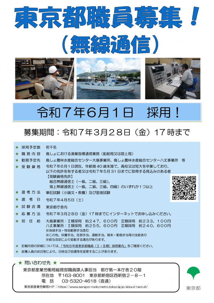 【東京の島ではたらきませんか】東京都職員(常勤)採用募集
